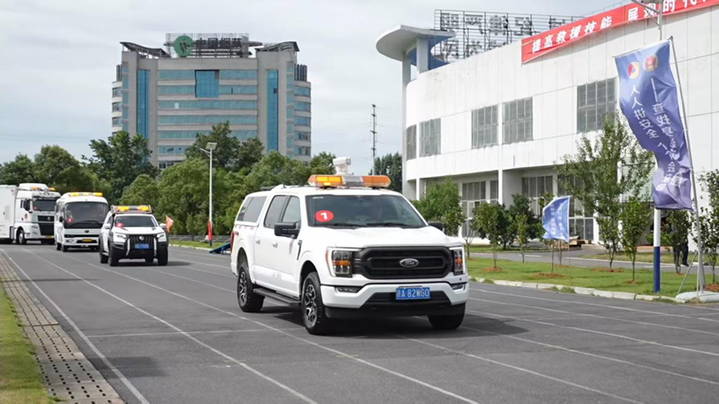 演练开始后,卫星通信指挥车、救援宿营车、多功能集成式救援装备保障车、排水抢险车、应急救援电源车等13台救援车辆和装备依次接受检阅。