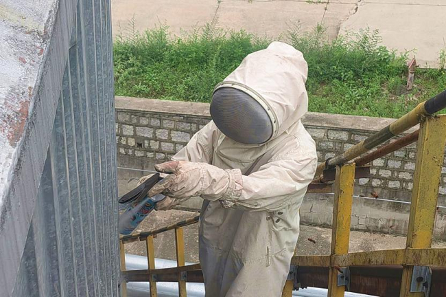 为高效消除蜂患,吉林石化队除蜂小队身着专业防蜂服,携带专用清除工具,深入重点区域进行全面排查与清理。队员们利用伸缩杆精准摘除附着在高处和装置表面的蜂巢,通过红外探测仪准确定位隐蔽在管廊支架夹缝和保温层缝隙中的巢穴,采用“喷雾剂驱散+药粉灭杀”的组合方式进行清除作业。