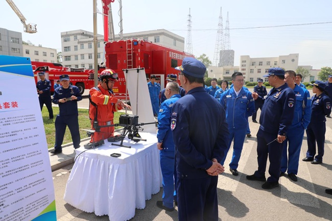 随后,抚顺石化队展示特种救援车辆和尖端救援装备,并现场操作演示大跨度消防车、举高喷射消防车、消防机器人、有毒气体探测仪、热成像仪、无人机、破拆工具组等救援装备的功能与用途,推动员工进一步增强安全意识、掌握突发情况下的应急处置技能。