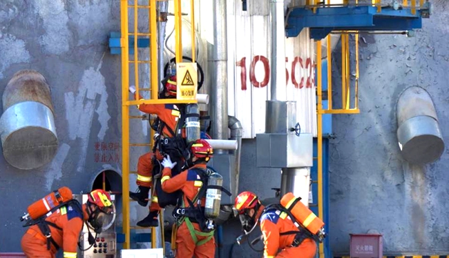 演练结合煤制油化工装置突发事故“风险集中、伤情复杂”特点,叠加高原高寒极端环境挑战,针对液氨泄漏、一氧化碳中毒、受限空间失温、盐酸灼伤等典型事故类型,设置液氨泄漏导致人员中毒冻伤并伴有高处坠落骨折、高处工艺管线一氧化碳泄漏着火并引发人员中毒、受限空间作业人员昏迷与失温、盐酸泄漏造成人员皮肤化学灼伤等4项贴近实战的救援场景。
