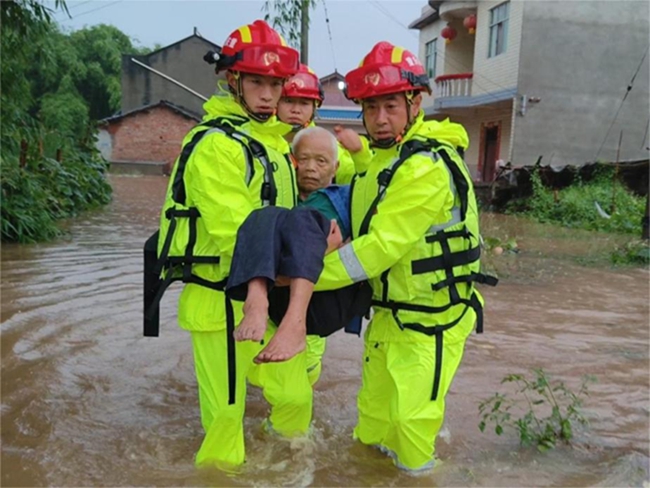 重庆潼南区“7·28”特大洪水现场转移受困老人(右一为姜伟同志)