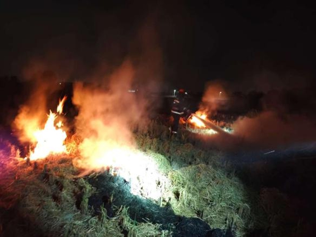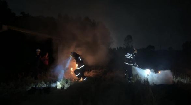 抵达现场后,指战员们即刻展开火情侦查:火场距管廊仅两米,燃烧物为秸秆,火势蔓延迅速,过火面积约40平方米,严重威胁液化气长输管线运行安全。各指战员迅速到达作战区域,通过干粉灭火器协同喷射,仅用3分钟便将明火彻底扑灭,经反复检查确认无复燃可能后,全体指战员归队,恢复战备执勤。