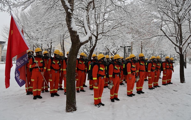 近日,国家矿山应急救援铜川队在低温雨雪冰冻恶劣天气条件下开展万米负重耐力训练,正式拉开新年实战化训练的序幕。