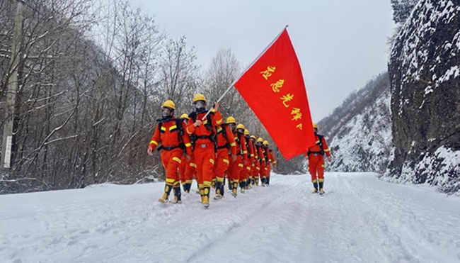 “出发!”指挥员一声令下,70余名队员身着橙色战斗服,佩戴氧气呼吸器,背负近20公斤的个人装备,踏着积雪,投入到这场超低温、高负荷、长距离的极限体能考验中。此次训练,铜川队共集结4个中队,旨在通过极端环境锤炼队伍的综合实战适应能力。