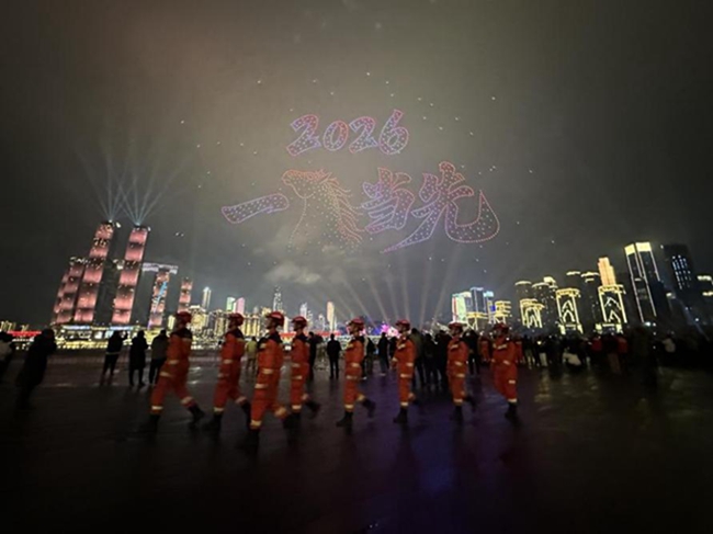 截至目前,重庆队已连续4年在重庆市跨年夜活动一线执行应急保障任务,以“硬核”担当守护当地重大节日安全。
