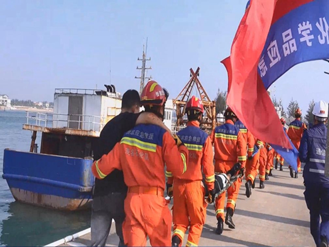 演练模拟“港口附近海域两艘大型渔船相撞沉没、多名渔民落水”场景,设置医学救援营地搭建、实战化处置、多部门联合救援等科目,紧扣水域救援“急、险、杂”特点,展开突发险情处置全流程。险情发生后,茂名石化队依托企业港口部立即报警并启动应急响应机制。茂名石化队水东中队、特勤中队12名指战员作为核心救援力量,主要负责落水群众的救助和转运工作。转运途中,救援人员规范做好伤员保障,精准实施心肺复苏,送达急救点后,医护人员接续开展心肺复苏、创伤包扎、溺水急救、抗休克等救治操作,顺利完成全部演练科目。