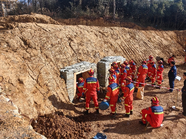 近日,国家隧道应急救援中铁五局贵阳队开展小导硐救援通道作业实操年终考核,检验提升队伍隧道坍塌应急处置能力。