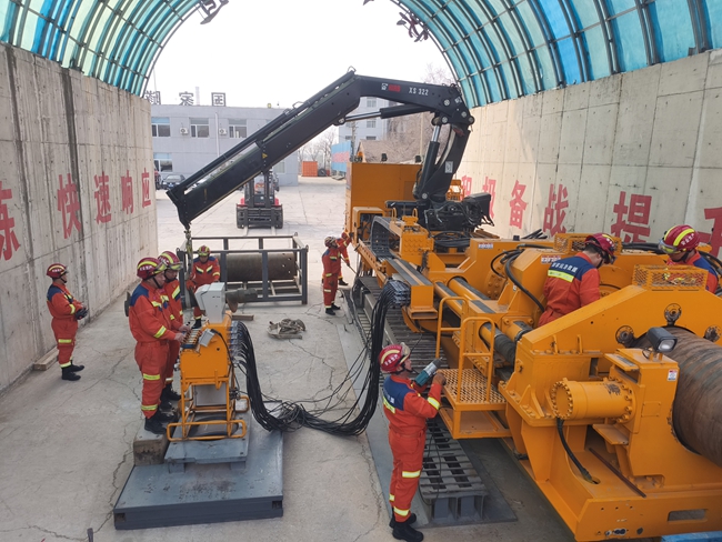 此次训练紧扣隧道坍塌救援实战需求,设置装备操作、精准钻进、故障排查、安全管控四大模块。讲解环节中,太原队教练员结合实战条件下隧道内复杂环境,向受训队员系统传授大口径水平钻机的工作原理、操作规范、钻进参数控制和常见故障处置方法。实操环节中,受训队员分为3组,轮流操作大口径水平钻机,依次进行钻机就位、精准对位、钻进控制、故障快速排除等科目训练,严格对标实战标准,确保操作流程规范、动作精准到位。