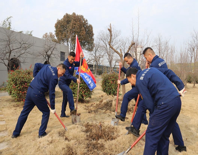 近日,在全国第46个植树节来临之际,国家矿山应急救援中煤新集队组织开展“践行绿色发展,共建美丽营区”主题植树活动,20余名队员积极参与营区绿化。