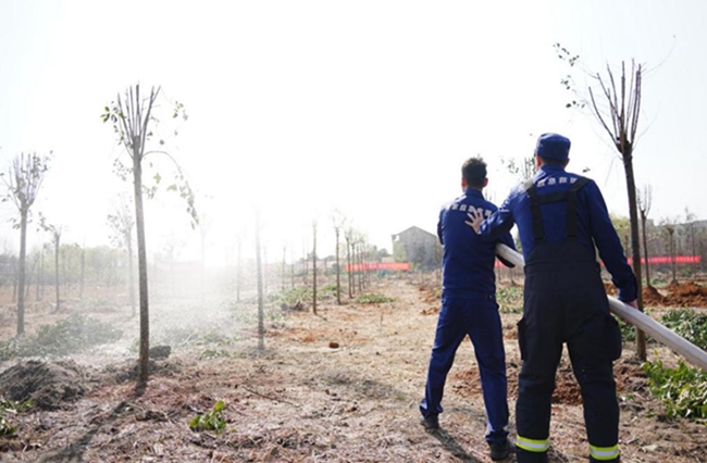 为保障义务植树活动安全、顺利开展,湖南队提前谋划部署,实地勘察环境、明确保障重点、制定应急预案。在活动执勤期间,队员们分工明确,一方面抓好现场安全,做好人员疏导、车辆引导与秩序维护;另一方面充分发挥装备优势,为新栽种苗木逐一浇灌定根水,提升苗木成活率。执勤间隙,队员们主动参与到义务植树活动中,挥锹培土、扶苗浇水,为长江岸线增添绿色生机。