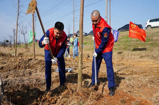 近日,国家危险化学品应急救援湖南队调派2台抢险救援车和多名队员参加湖南省岳阳市云溪区义务植树活动,以专业能力做好活动保障,以实际行动为长江岸线增添新绿。