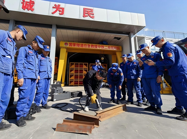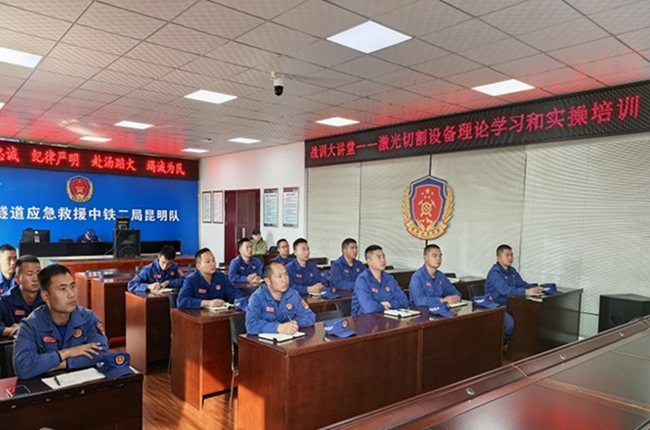 近日,国家隧道应急救援中铁二局昆明队邀请装备厂商技术专家现场指导,围绕队伍新列装激光切割机、钢筋速断器等救援装备开展专题培训。