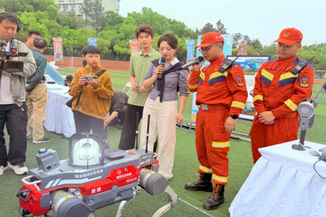 在装备展示区,探测机器人、三维激光扫描仪、红外热成像仪等多款专业应急救援装备集中亮相。队员们用通俗易懂的语言、生动鲜活的案例,逐一讲解各类装备的实战功能与应用场景。“太震撼了!原来这些救援装备可以这么智能。”现场师生不禁发出感叹。