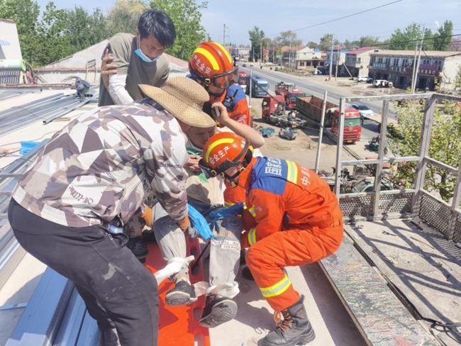 指挥员立即指令救援人员携带专业救援装备前往事故平台,第一时间安抚受伤人员情绪,对受伤肢体开展紧急止血包扎并详细记录止血时间。同时,救援人员精准操作抢险救援车举升平台,将受伤人员安全转移至地面,并顺利移交现场120急救人员。经反复排查确认现场无安全隐患后,队伍整理归集装备器材后返程归建。