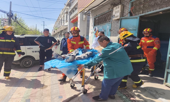 近日,河南濮阳柳屯镇某商铺平台上有作业人员遭遇机械伤害,国家危险化学品应急救援中原油田队接警后,出动2台抢险救援车和12名队员赶赴现场处置。