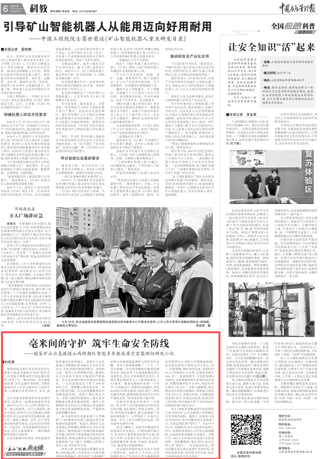如今,智能多参数地质灾害监测仪已成为国家矿山应急救援山西特勘队日常训练的标配。据统计,设备投入使用半年时间,成功预警地质灾害隐患7次,实现监测区域“零伤亡”。2024年9月8日,特勘队队员在左权县的监测工作中,监测系统提前6小时发出崩塌警报,当地政府紧急疏散33名群众。当晚11时,500立方米塌方体造成3处院落损毁。因预警精准、响应及时,成功实现人员“零伤亡”。队员崔訸所说:“看到预警系统在真实监测中发挥作用,我们深刻感受到,用科技守护生命,毫米之间真的能见证安全奇迹。”