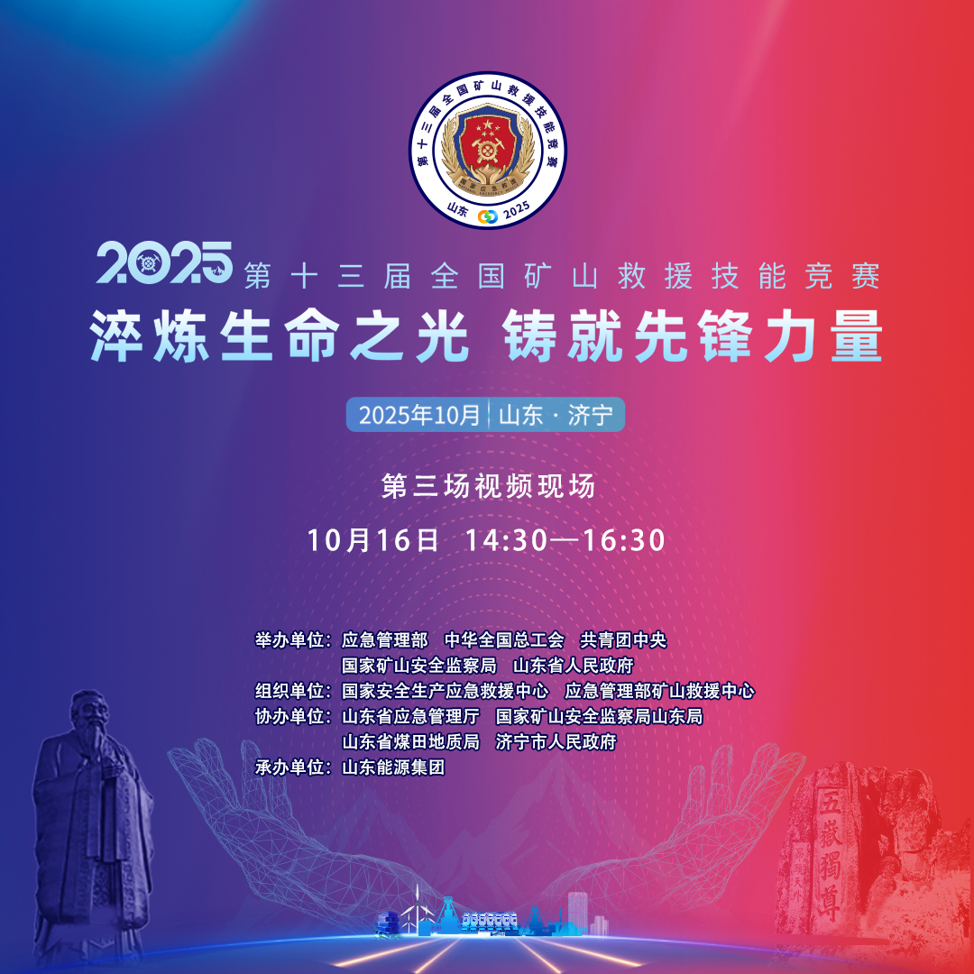 10月17日,由应急管理部、中华全国总工会、共青团中央、国家矿山安全监察局、山东省人民政府主办,山东省应急管理厅、国家矿山安全监察局山东局、山东省煤田地质局、济宁市人民政府协办,山...